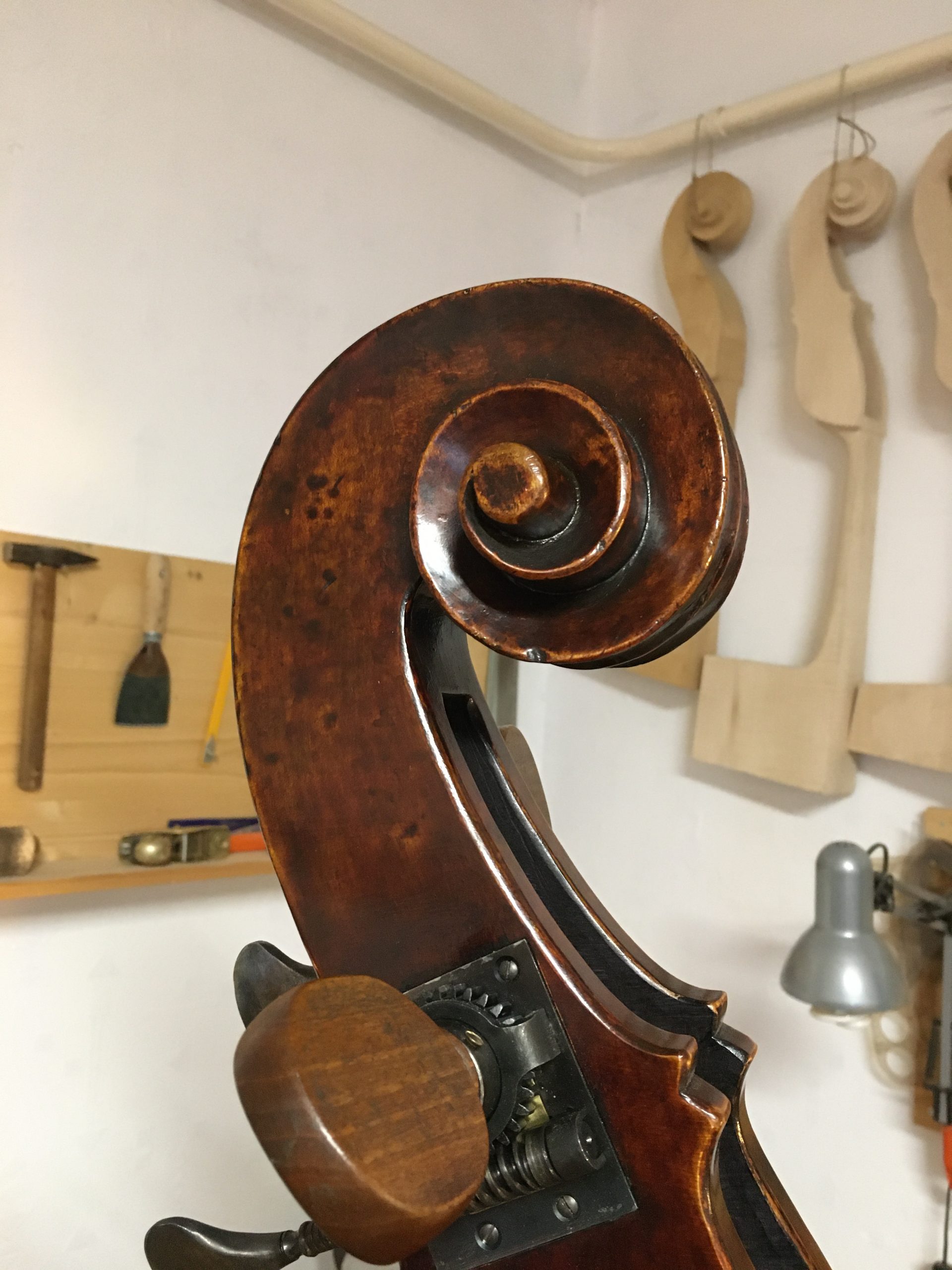 General restoration on a beautiful old Italian double bass by Pietro Pallotta, Perugia 1790